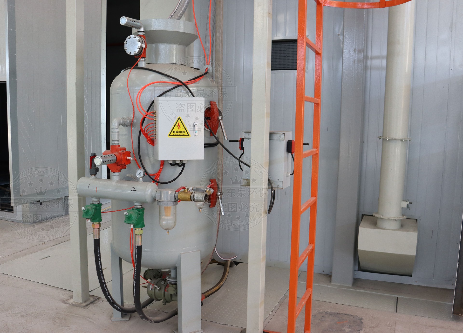 2)噴砂設備采用1臺我公司生產(chǎn)的壓入式高效噴砂機,具有高效率、大容量、寬工作壓力范圍(可在0.6-0.75MPa的壓力范圍內(nèi)正常進行噴砂作業(yè))、噴砂參數(shù)可任意調節(jié)(工作壓力、砂流量以及助推流量都可進行無級調節(jié))以及性能穩(wěn)定可靠等特點;